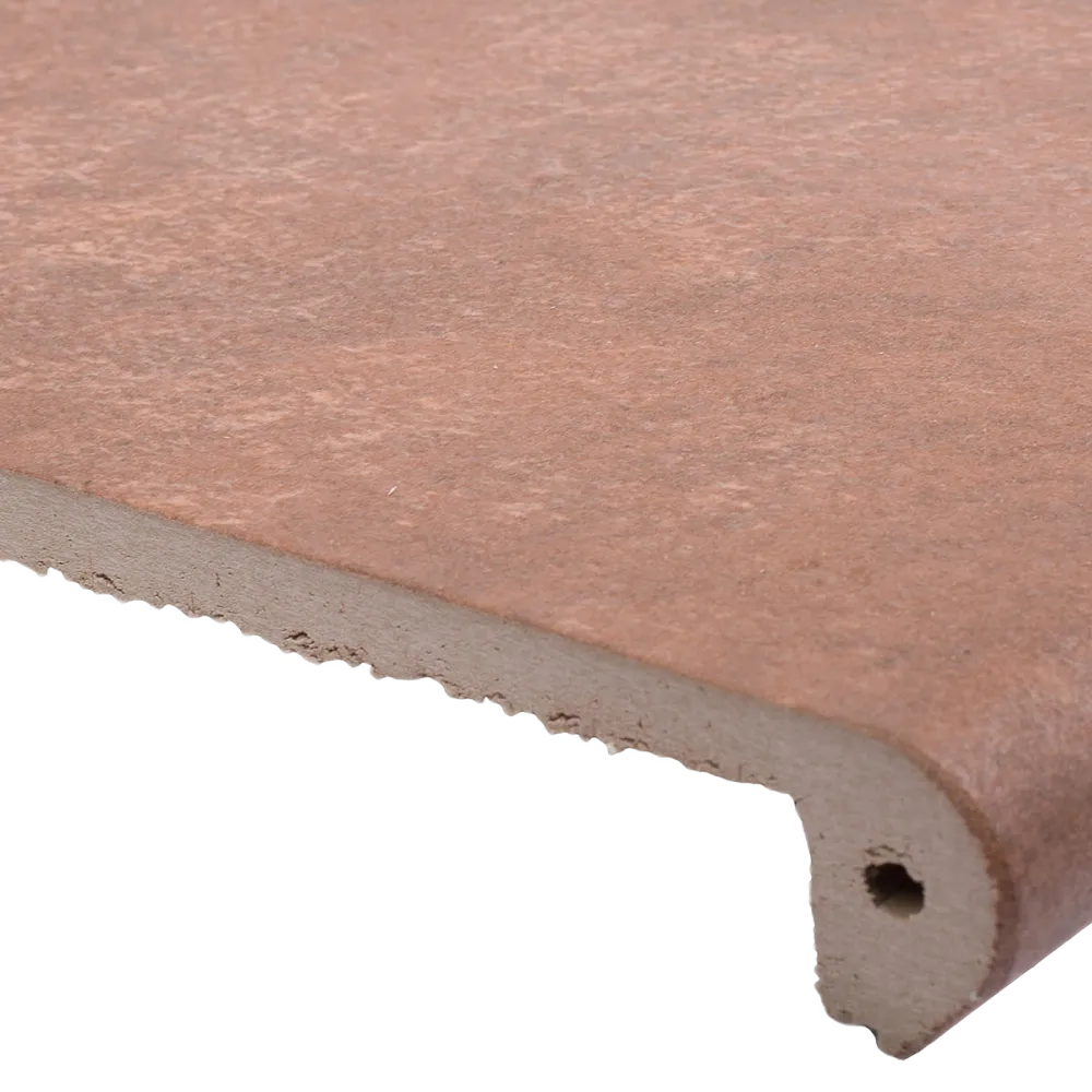 Фронтальная ступень в насыщенном красном оттенке из коллекции Boston. Производится испанской фабрикой Exagres с использованием цифровой печати для достоверной имитации камня.