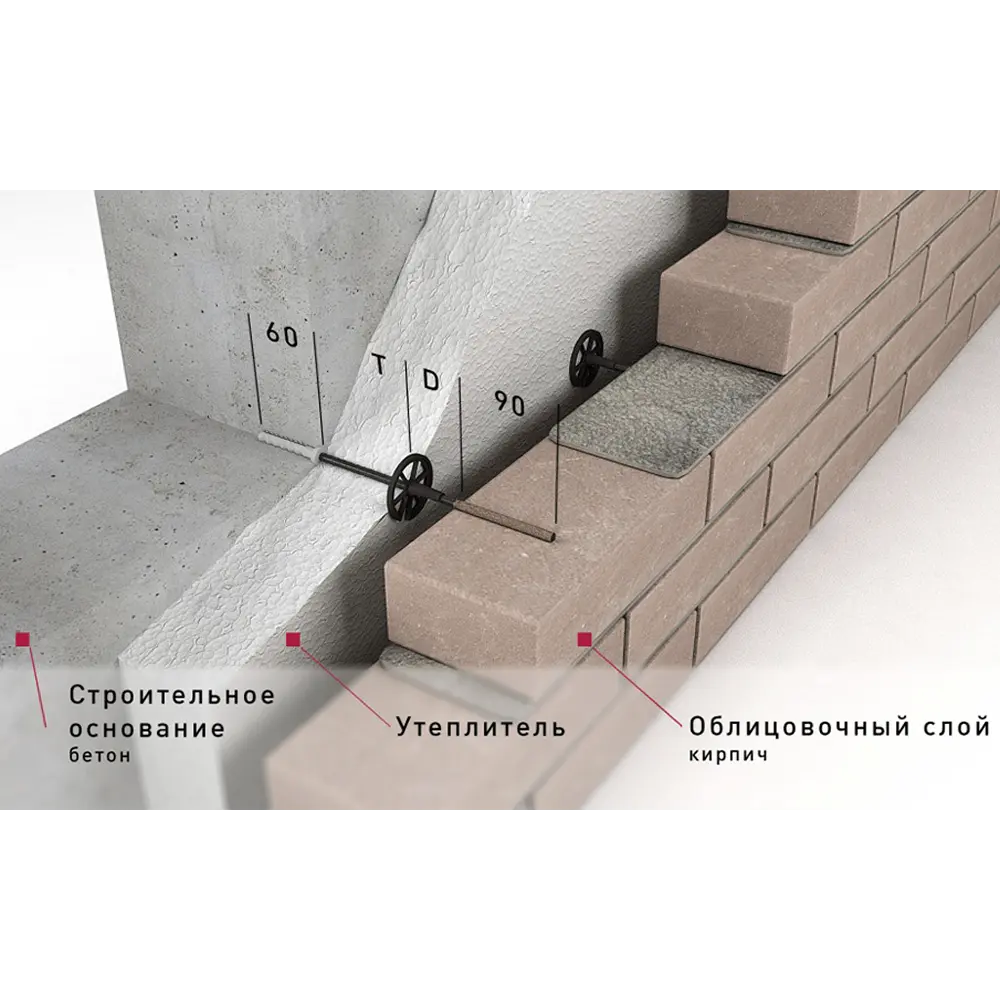 Устойчив к коррозии и температурным деформациям. Подходит для жилых и коммерческих объектов. Монтаж прост — анкер устанавливается в просверленное отверстие и фиксируется в кладочном шве. Гарантирует долговечность и целостность фасада.