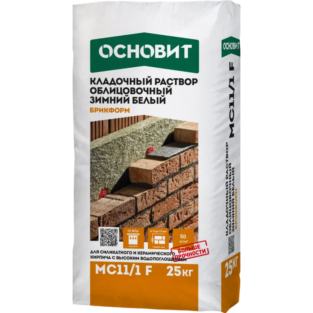 Зимний белый кладочный раствор Основит Брикформ МС11/1 F с улучшенными характеристиками позволяет работать при температуре до -10°C. Подходит для декоративной кладки.