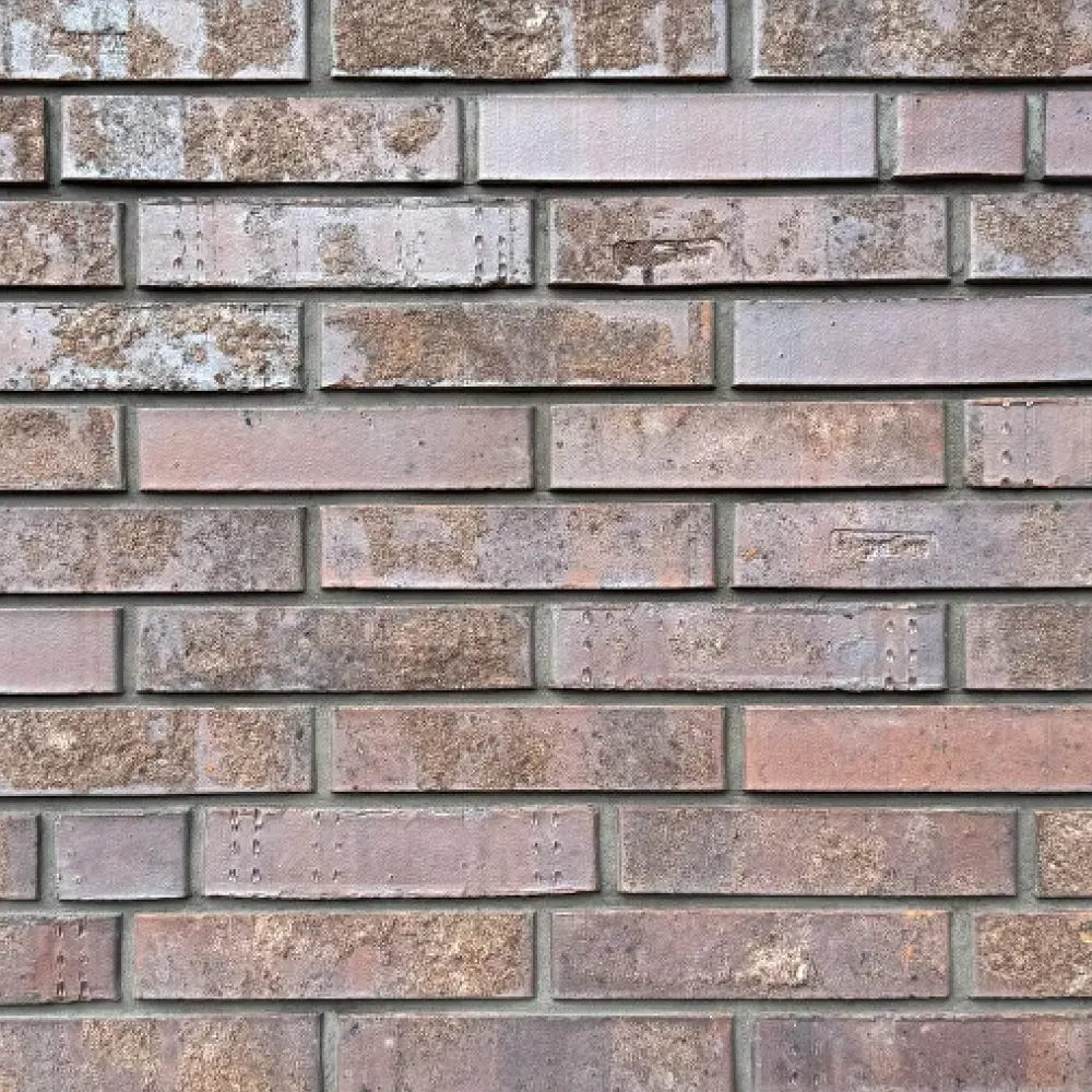 Клинкерный кирпич для фасада 250х85х65 мм полнотелый сорт 54 — фиолетовый с коричневыми пятнами