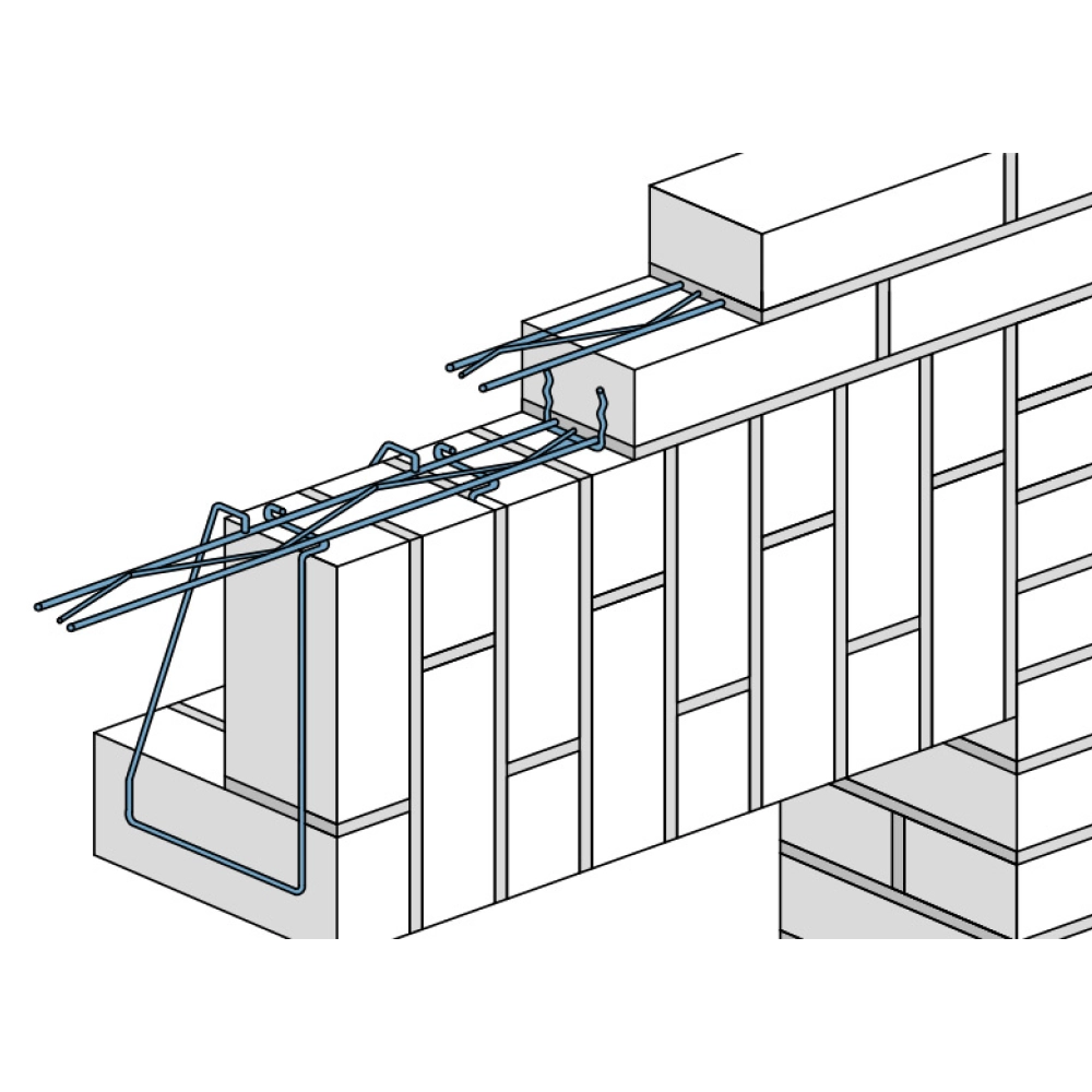 Перемычка собирается из готовых элементов системы Baut, что значительно упрощает монтаж и исключает ошибки при армировании. Все компоненты обеспечивают жёсткую связь между слоями кладки. Решение подходит для жилого и промышленного строительства, гарантируя долговечность и безопасность.