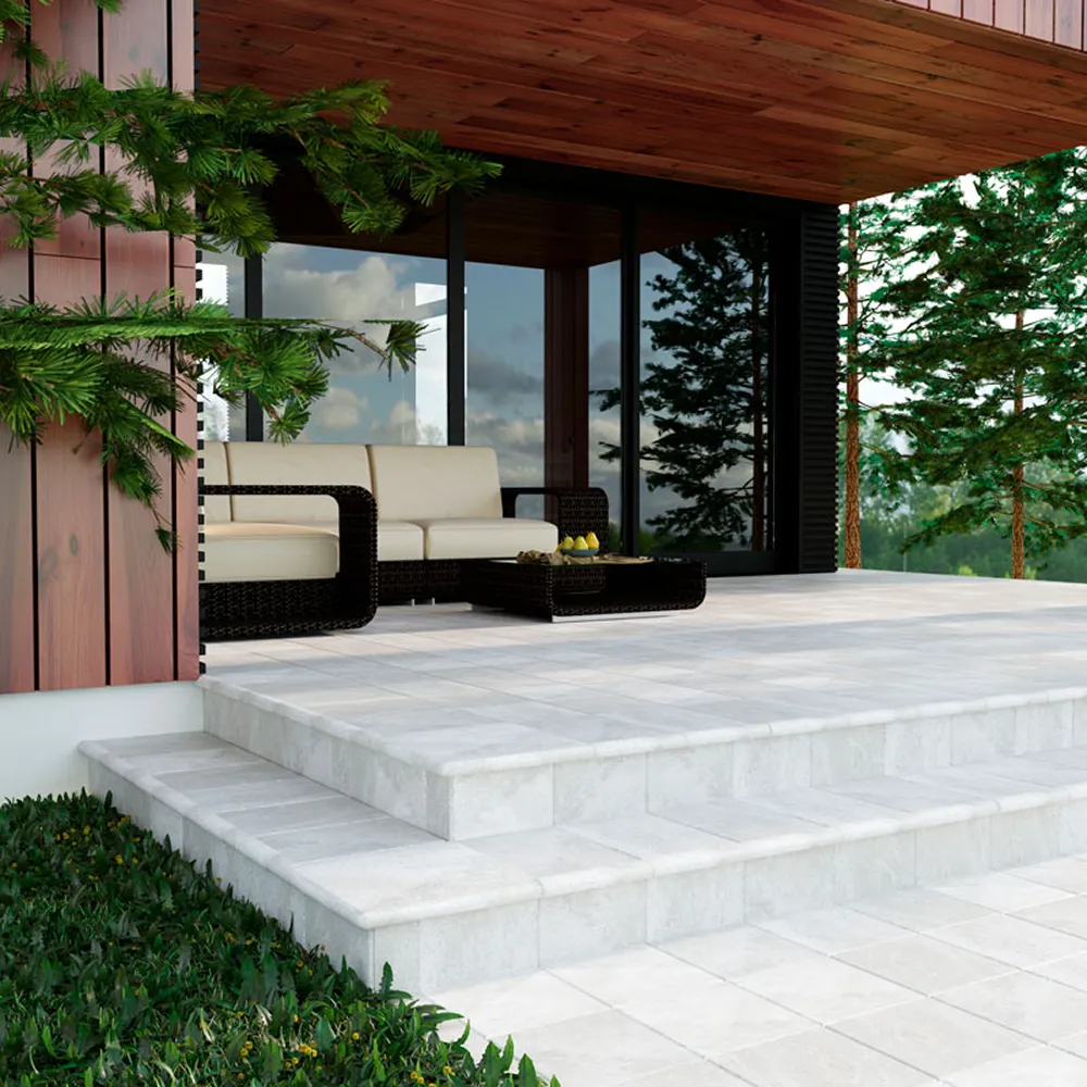 Напольная плитка из коллекции Boston от Exagres. Имитирует натуральный камень в белом оттенке и идеально дополняет ступени той же серии.