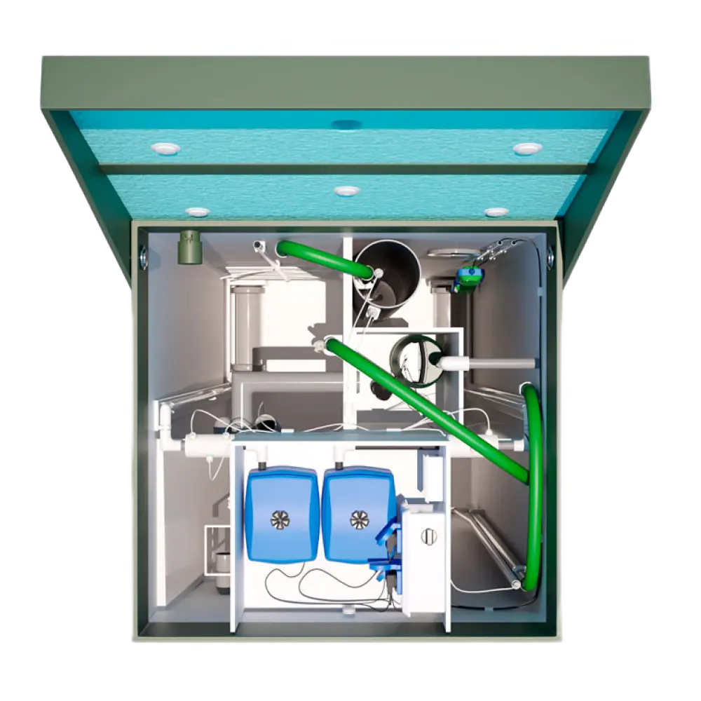Рассчитана на 12 человек при постоянном проживании или до 30 человек при сезонном использовании. Производительность — 2,4 м³/сутки. Подходит для крупных загородных резиденций, мини-отелей, ресторанов.
